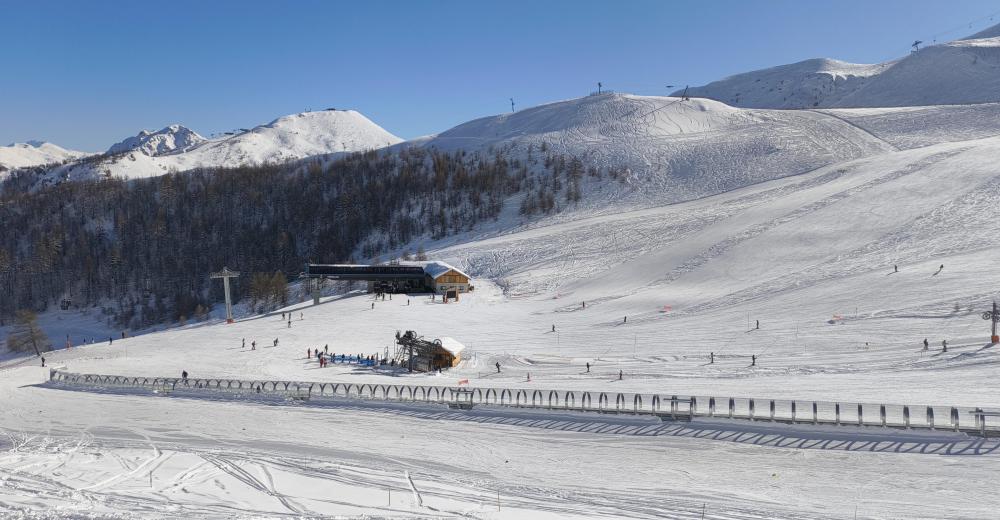 Pour les cours flocons, les enfants sont directement pris en charge au départ du télécabine et les cours ont lieu en altitude sur des pistes vraiment géniales pour les débutants.